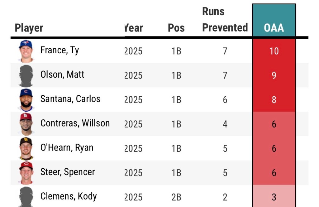 Contreras transitioned to first base in 2025 after spending the first nine seasons of his Major League career as a catcher. In his first full season at first base, Contreras posted 6 Outs Above Average, ranking fourth among qualified first basemen behind only Ty France, Matt Olson, and Carlos Santana. Pete Alonso, on the other hand, posted -9 Outs Above Average, the second worst among First basemen in all of baseball behind only Rockies first baseman Michael Toglia. Using Statcast’s Runs Prevented, we can convert Outs Above Average into Runs Saved. According to Statcast, Willson Contreras prevented four runs at First Base in 2025. In comparison, Pete Alonso prevented -7 runs. That +11-run swing can make a huge difference and decide not just one game but several, which is a massive deal in the always competitive AL East.