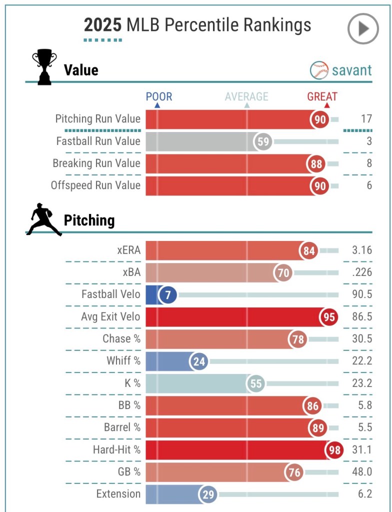 Over the past two seasons, Suarez has truly established himself as a frontline starting pitcher. Since 2024, Suárez’s 7.5 fWAR ranks ahead of Logan Gilbert, George Kirby, Joe Ryan, and Freddy Peralta, all of whom are viewed as some of baseball’s most elite front-line starting pitchers.